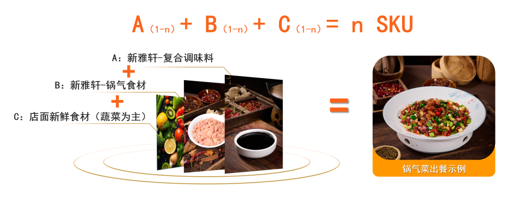 ? A = 復(fù)合醬料:新雅軒精選4000+味型配方,統(tǒng)一醬料配比,省去門店復(fù)雜調(diào)味環(huán)節(jié),新手員工也能穩(wěn)定復(fù)刻招牌味道。